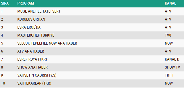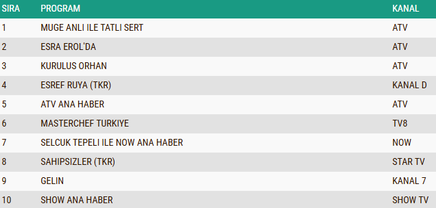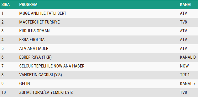 Günün Total izleyici grubunda birinci sıraya yerleşen "Müge Anlı ile Tatlı Sert", AB ve ABC1 kategorilerinde de fark atarak zirvedeki yerini korudu. Özellikle son bölümde ele alınan çarpıcı dosyalar ve canlı yayında yaşanan gelişmeler, sosyal medyada daha geniş yankı uyandırdı. Müge Anlı ve ekibinin kararlı, insan odaklı çalışmaları, programı yalnızca bir televizyon yapımı olmaktan çıkarıp toplumun vicdanına dokunan bir platform haline getirdi.
