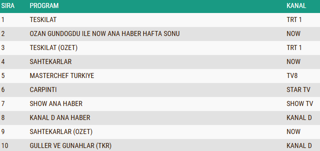 16 Kasım 2025 Pazar Reyting Sonuçları