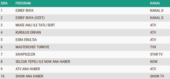 28 Ocak 2026 Çarşamba Reyting Sonuçları
