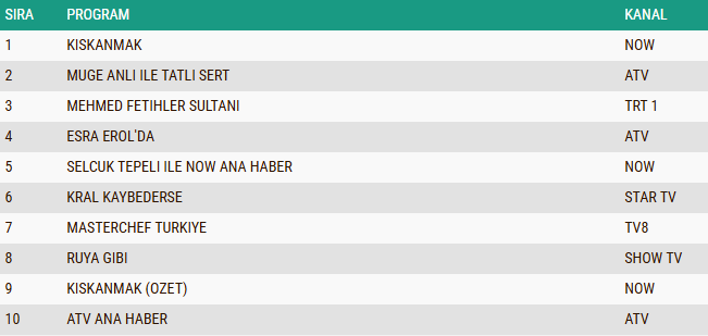 ABC1 kategorisinde günün kazananları net bir şekilde ortaya çıktı. Listenin ilk sırasında, yayınlandığı her bölümde güçlü hikayesi ve oyuncu kadrosuyla dikkatleri üzerine çeken dizi “Kıskanmak” yer aldı. Dizi, özellikle şehirli izleyici kitlesi ve reklam verenlerin hedeflediği profilde geniş bir karşılık bularak geceye damga vurdu.