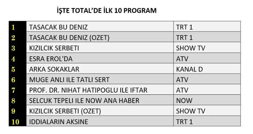 TOTAL REYTİNG SONUÇLARI