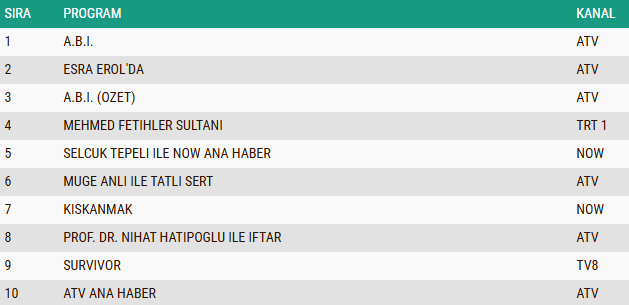 ABC1 REYTİNG SONUÇLARI