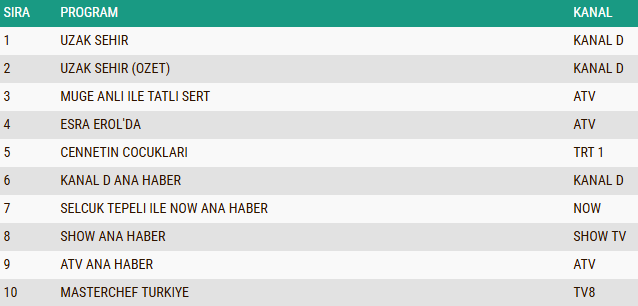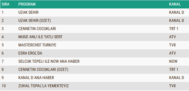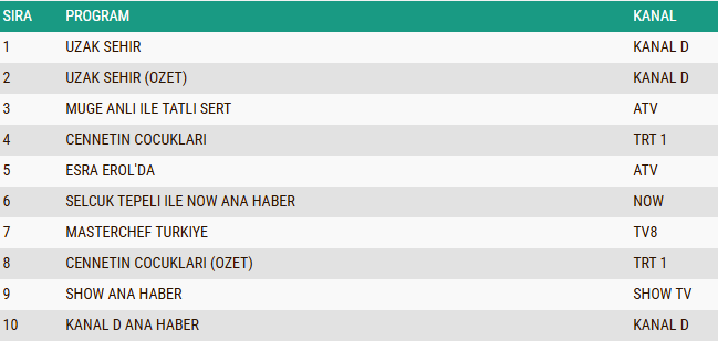 Yalnızca Total'de değil, AB ve ABC1 kategorilerinde de birinciliğe kimseye bırakmayan Uzak Şehir dizisi, başarısını bir kez daha kanıtlamış oldu. İzleyiciler, dizinin hem dramatik yönünü hem de karakterlerin iç dünyasını derinlemesine işleyen anlatımını övgü ile karşıladı.