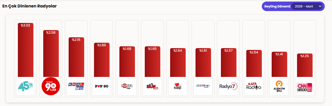 2026 Mart Ayında En Çok Dinlenen Radyolar